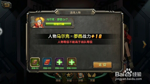 如拥有练习之书你可以【点击】界面【人物】二字,接着在弹出界面【点击】最右边的【进级】二字,点击后会弹出利用经验之书界面。
