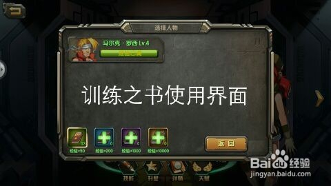 最后来说一下这个练习之书的利用界面,进入这个界面后首先你要【选择练习之书】的种类,选好之后【直接点击】你所需要进级的【脚色】即可。