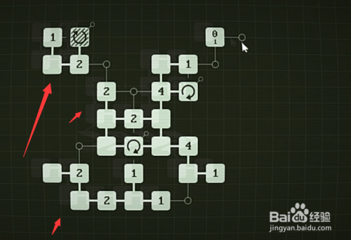 这一关可以从左上两个三起头解密起走,然后再解右下角,左下角后右上角都比力好解。