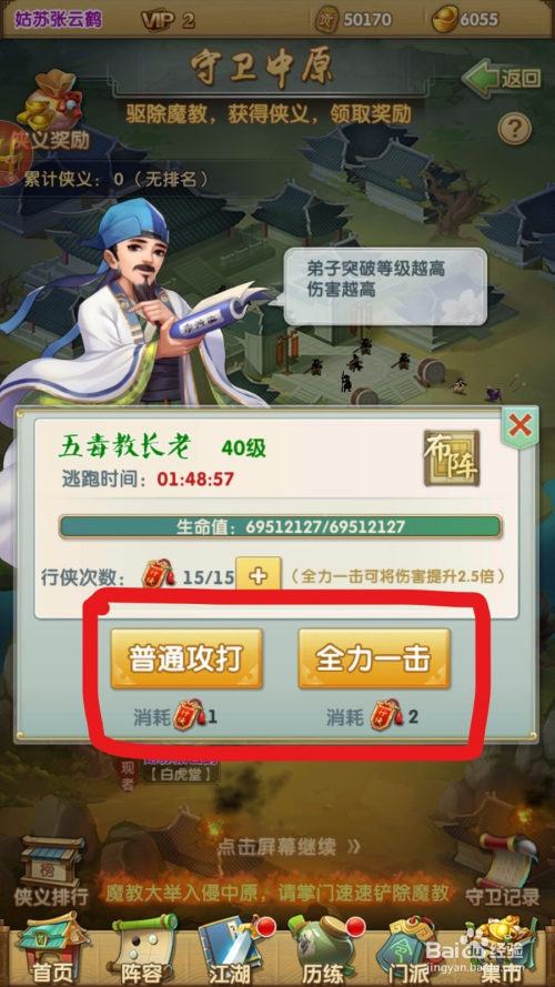 在进入战斗之前,可以选择一个通俗和全力一击。全力一击固然会耗损2次的挑战次数,可是却能获得2.5倍的进犯危险!