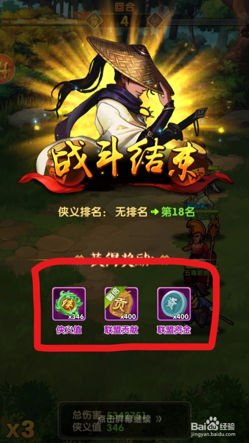 当玩家的所有出战脚色阵亡后,在结算的界面中就能看到本身获得的侠义点和一些其他的奖励!