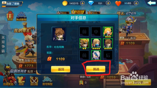 选择好之后,就能看到敌手的声势。直接点击挑战就能挑战了!