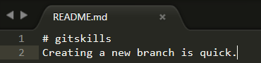 接下来我们在我们的README.md文件中添加一行“Creating a new branch is quick”,如下图: