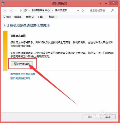 3、在弹出的对话框中同样选择“启用媒体流”,然后在弹出的对话框中点击“确定”按钮。