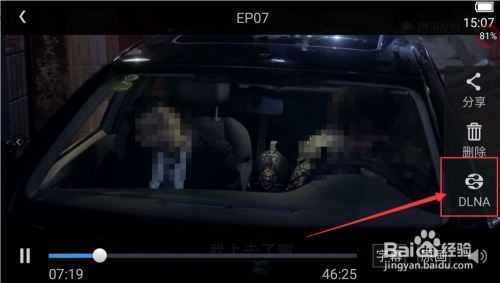6、接下来我们用手机进行操作,首先要毗连到与电脑统一个wifi,然后打开手机视频播放器,然后打开一个视频,点击屏幕中的DLAN,或者是有TV的投屏标记,就可以在电脑上看手机的视频了。
