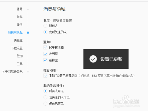 点击【我所存眷的人】。点击后,页面会呈现已更新的提醒,这就暗示设置生效了~