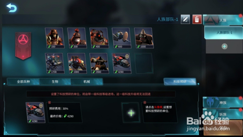 打开人族之后,再打开【人族军队-1】便可预研科技了。