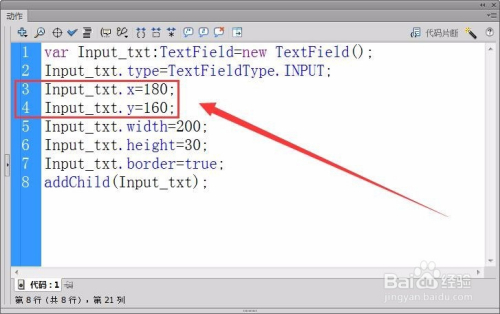 接着,设置输入文本框的左上方的坐标,本例坐标值为(180,160)。