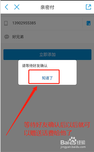 期待老友确认后呢,就可以赠予话费给老友喽。
