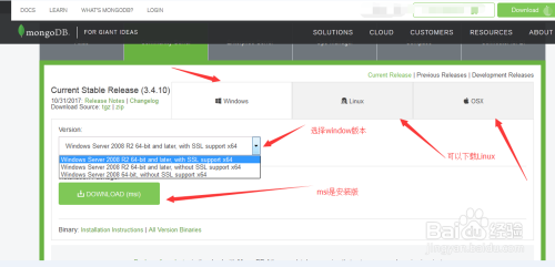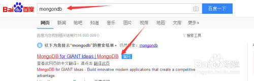 首先百度中输入【mongodb】,默认搜刮第一个就是官网地址,点击进入即可