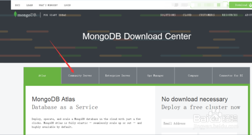 进入【MongoDB Download Center】后,点击页签中的【Community Server】