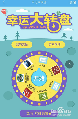 付出一毛钱之后就可以转盘抽奖啦,抽到个咖啡话费也是不错的。