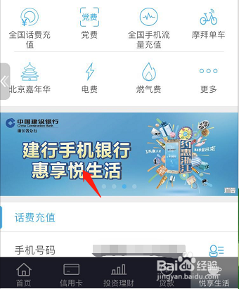 首先,打开手机建行app,登岸手机银行;
