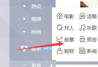 3.在新跳转页画的左侧下方更多里找到“股票”