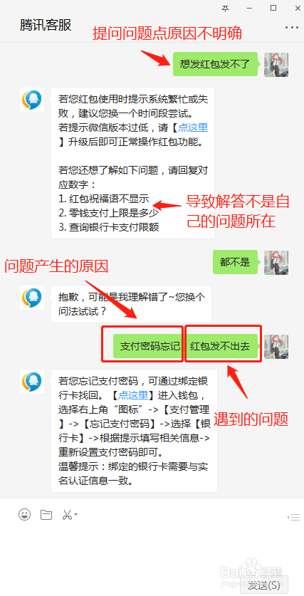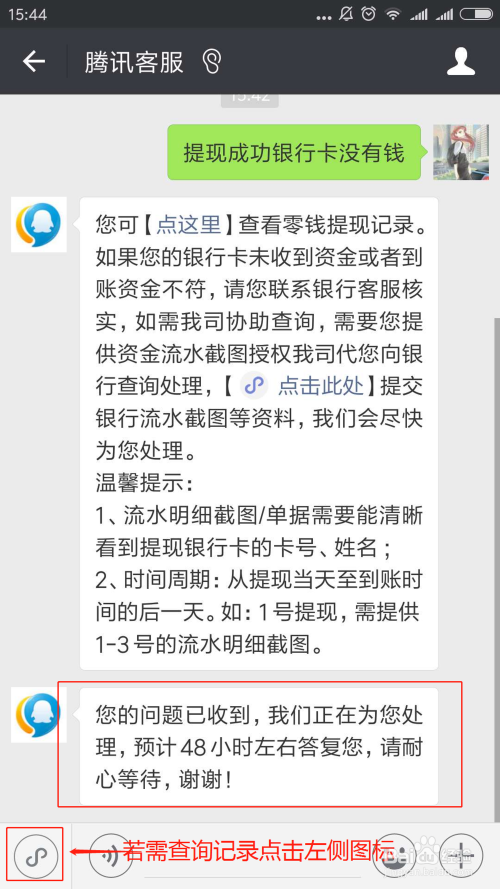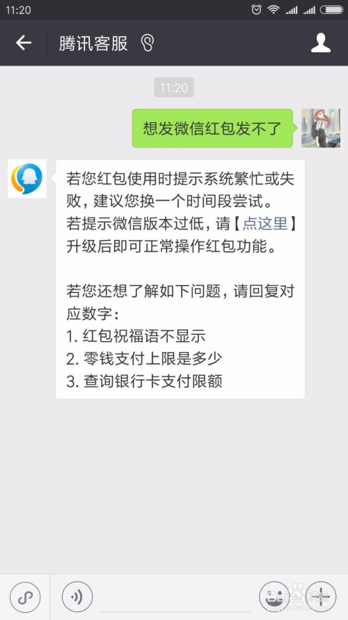进入客服页面后,我们就可以描述问题和腾讯客服公家号起头对话了,