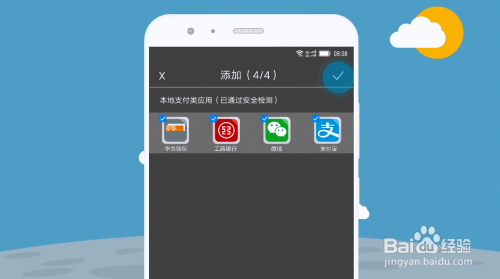 在桌面打开“付出庇护中间”,点击“添加”,选择付出类应用,点击“确定“。添加当作功后,应用上会增添付出平安的小图标。