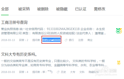 如许你就可以知道每个你所回覆提问者的ID名称了,也就可以操纵私信进行沟通。