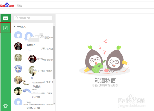 进入到本身的小我中间页面→点击页面右上角出的“私信”→进入私信页面后→点击左侧的“纸笔”图标(图示中红框出)。