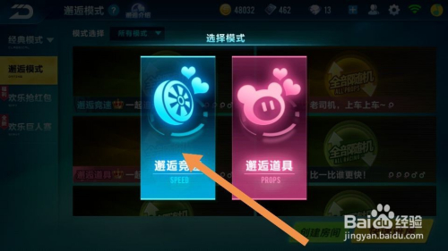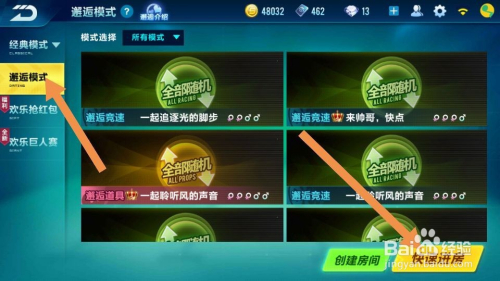 点击快速匹配后,系统会让你选择角逐模式,选择本身喜好的模式,竞速或道具,如图。