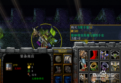 之后,我们可以经由过程徽章直接传送回城。然后,去装备店,采办响应的装备。好比小编的英雄,是力量的。