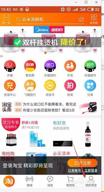 下载淘宝手机端app,进入app首页