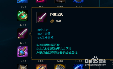 然后虚空之女的出门装带多兰剑来增添她的危险和续航能力。