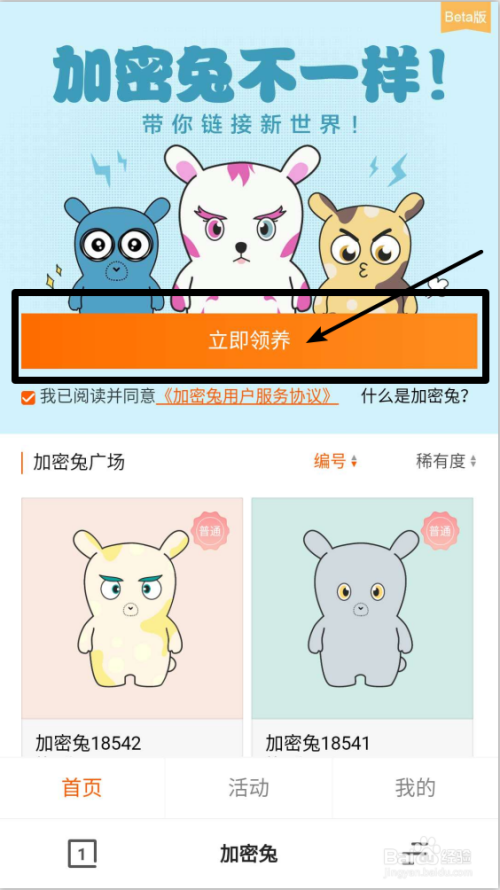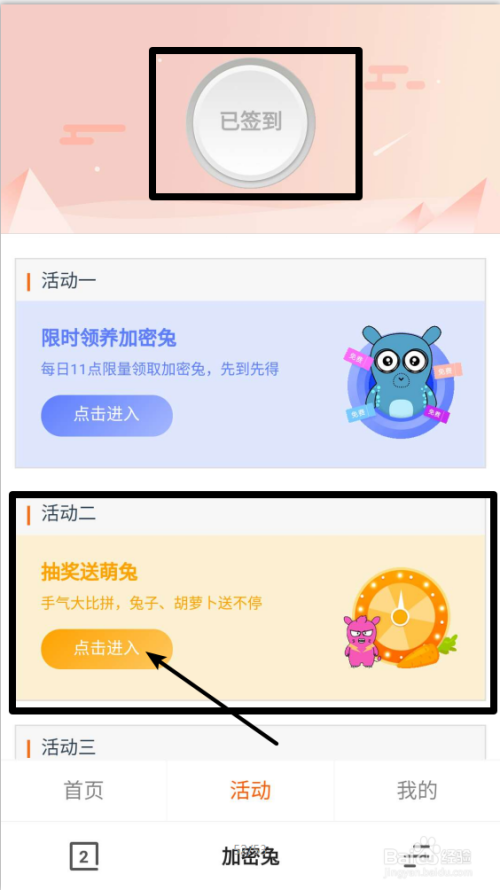 点击【活动】查看活动一每日限时领取加密兔(每日11点)