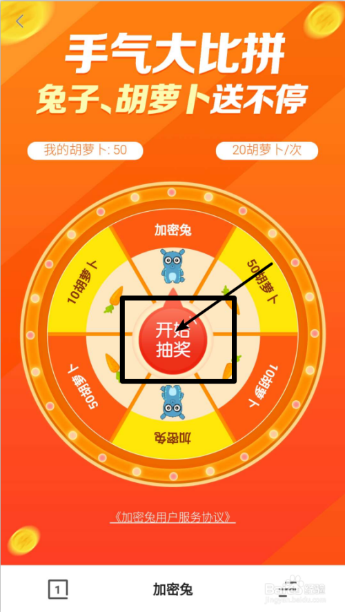 抽奖可以必然概率免费获得加密兔或胡萝卜