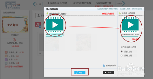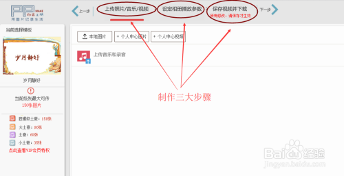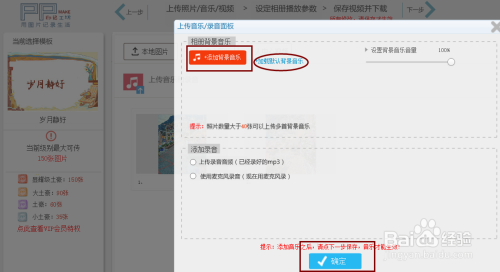 选择图片上传(有当地图片和小我中间图片)点击就可以直接添加进相册里面,接着上传的视频与喜好的音乐就完当作建造的第一步调。