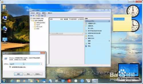 起头→运行→输入:regedit→确定,打开注册表。