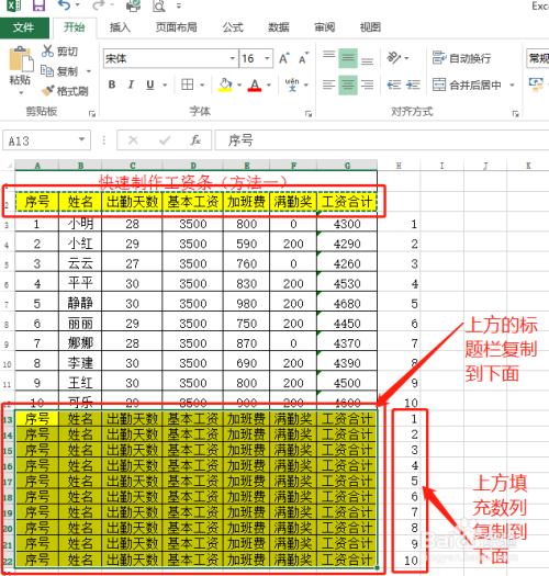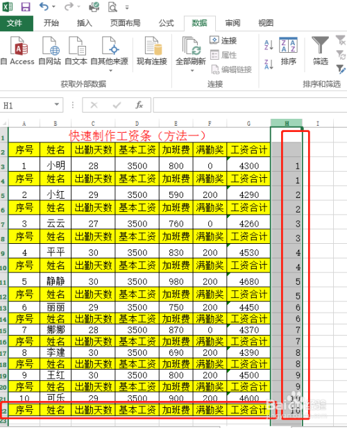 最后删除后面的序号列和最下方的题目列,工资表就建造当作功了,可以进行裁剪。
