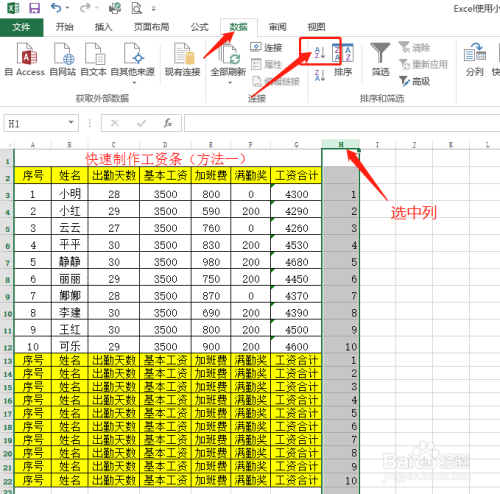 选中右侧序号列,冲击东西栏数据下的“升序”