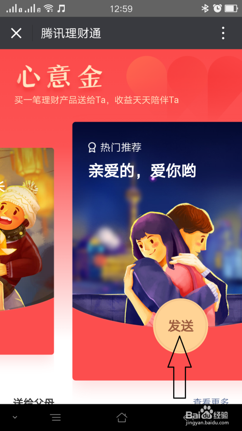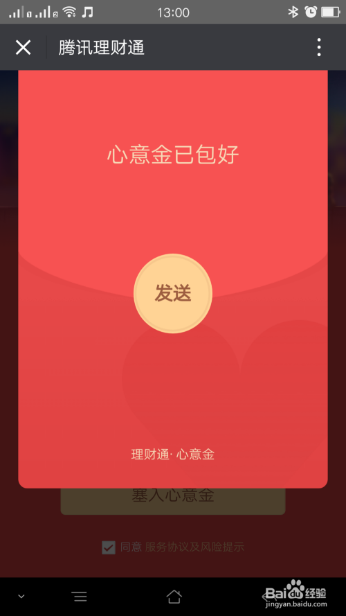 点击老友,弹出发送界面,如图,点击发送就完当作心意金操作了,老友接收就可以了