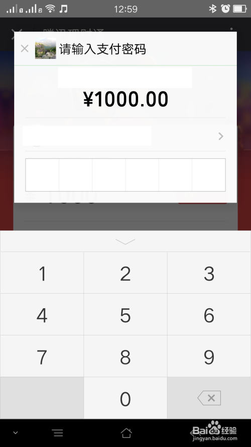 设置完金额和祝福语,点击塞入心意金,进入到付出密码输入页面,如图