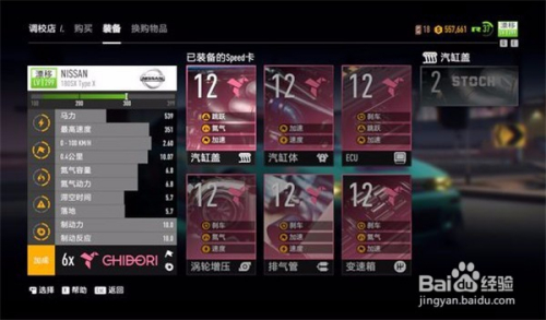 漂移比力主要的是足够的加快度来包管漂移的持续性和连贯性,以及杰出的刹车机能以便在漂移起头或过程中进行轨迹微调。这里我保举利用一套Chidori的粉色卡,后期零件令牌足够的童鞋可以选择多刷增益多的粉色卡,加快、刹车优先,氮气其次。