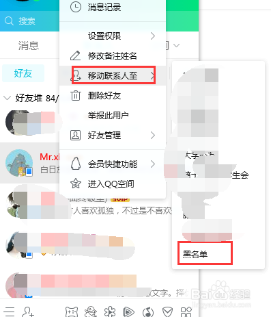 也可以直接鼠标选中拖至黑名单的分组里。