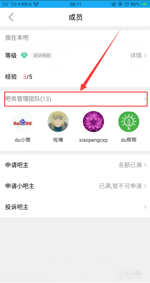 接着点击贴吧的吧名出,也就是显示你品级的处所