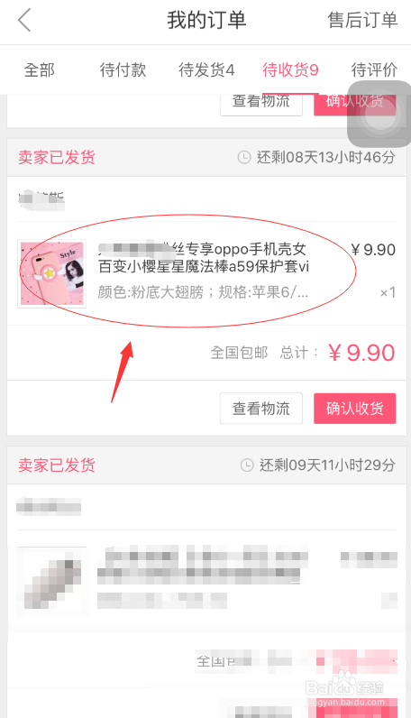 在我的订单界面待收货下方点击需要退条目的商品,点击退条目/退货按钮。