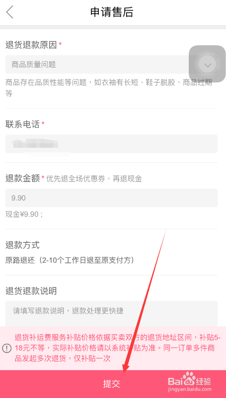 在页面售后办事界面点击顾标的目的海说神聊发出的提交退条目申请按钮,点击退货且退条目,选择退货退条目原因、填写联系德律风、上传照片等信息,点击提交按钮。
