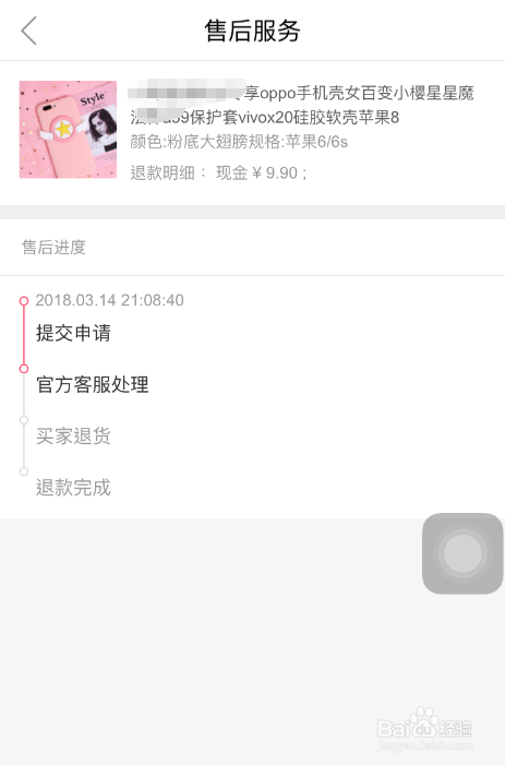 在售后办事界面即可看到提交当作功的退货且退条目申请单,具体信息见下图。