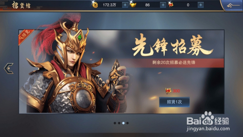 【名将招募】需要金币,每次需要300金币,武将的品质也提高了。