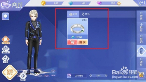 第三步进去商城之后,选择戒指进行采办,需要注重的是两边都要采办戒指,成婚典礼的时辰需要互换戒指,如下图所示: