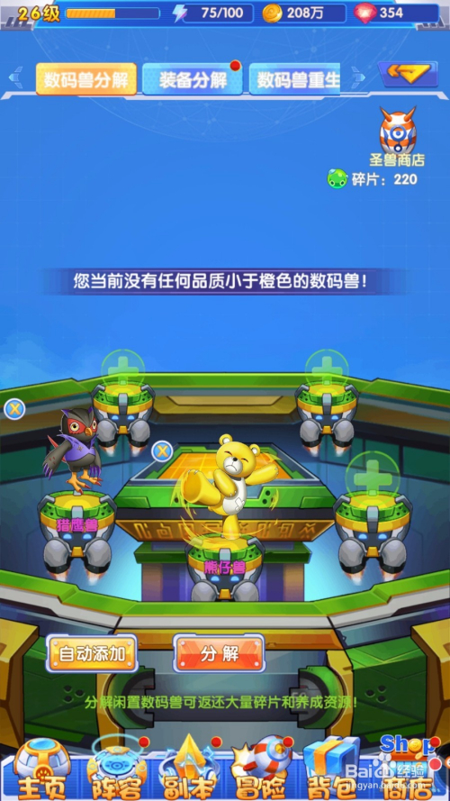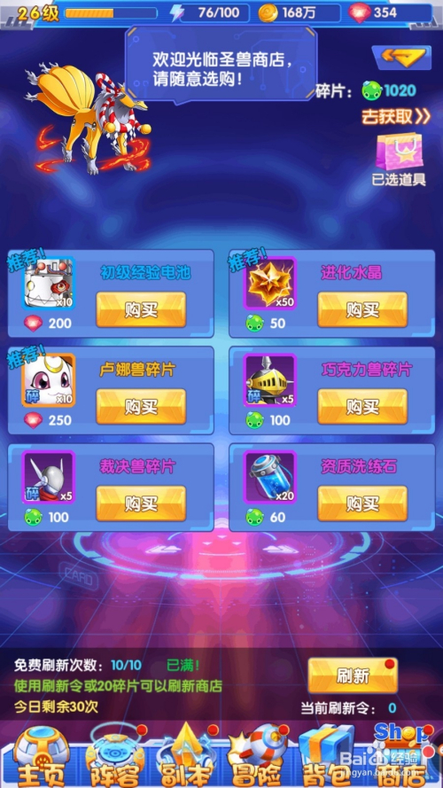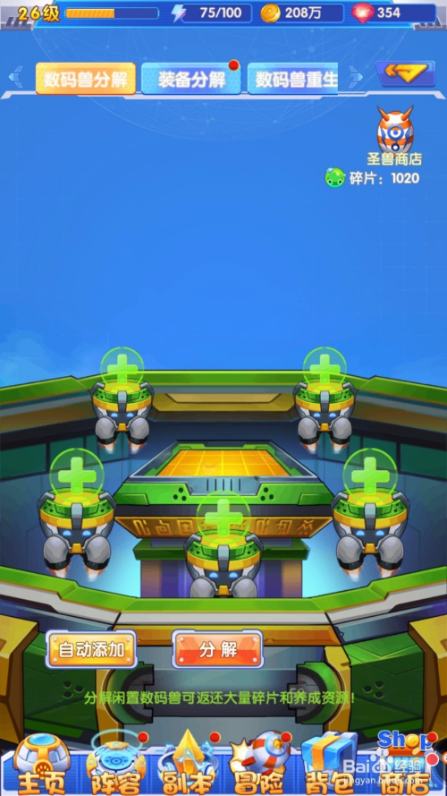 分化完毕就点击右上角的【圣兽商铺】进去采办你需要的物资,材料不足可以进行分化数码兽获得材料。