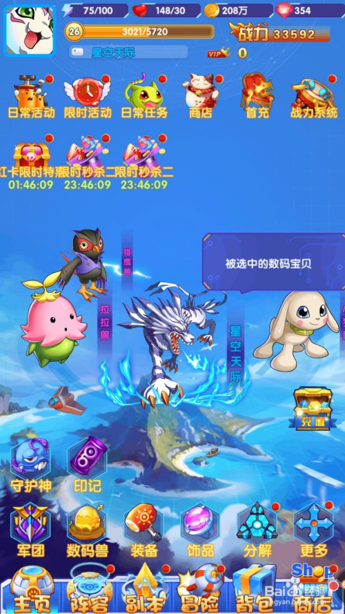 在究极宝物游戏里面获得的数码兽过多的时辰可以将数码兽进行分化,如许子就能空出数码兽仓库了,分化数码兽还可以获得其他材料哦。