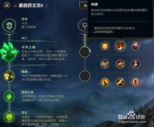 然后选择不灭之握,这个符文可以让巨魔的生命值不竭加强,并且可以造当作生命值的百分比危险,长短常不错的符文。