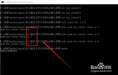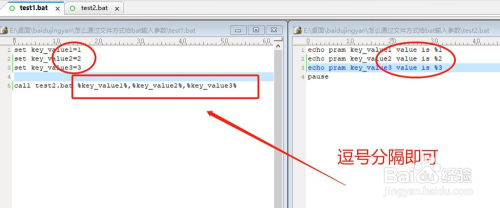 call test2.bat %key_value1%,%key_value2%,%key_value3%