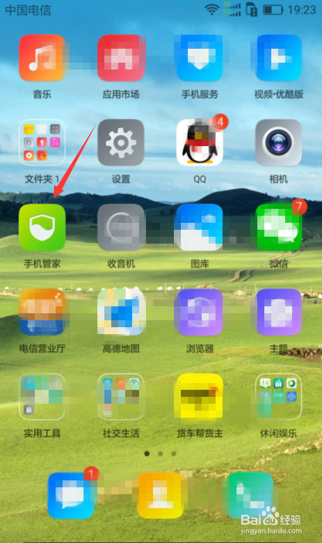 1,打开手机下载手机管家,点开手机管家。