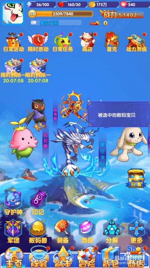 点击宝贝旁边的方框就可以进入选择敌手了,你可以直接点击【扫荡】便可快速获得碎片了。