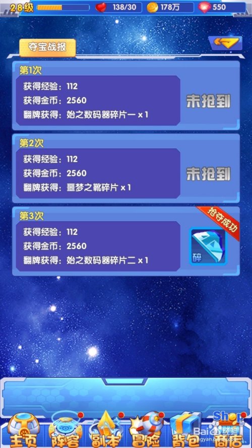 扫荡当作功获取碎片后就可以退出去了,然后进行打其他部位的碎片。