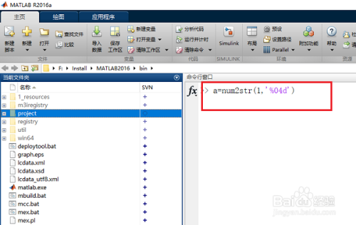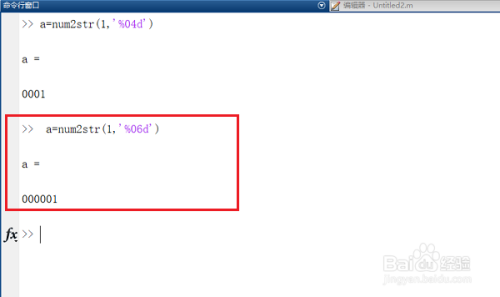 第一步在我们的电脑上打开matlab的号令行窗口,输入“a=num2str(1,'%04d')”,如下图所示: